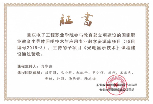 2018年5月,教育部在北京组织专家对2015年度立项建设的22个国家教学资源库进行了验收。我校光电显示技术专业教学团队刘睿强作为半导体照明技术与应用专业国家级教学资源库项目组教师代表参加了现场答辩,并顺利通过了答辩验收。