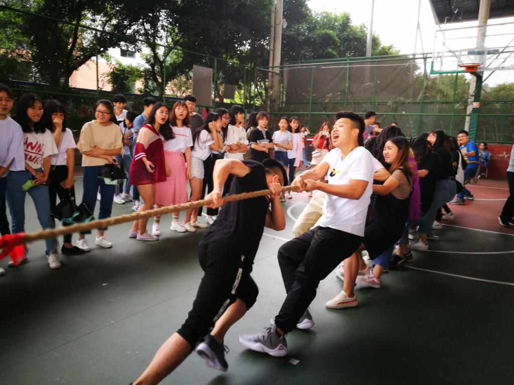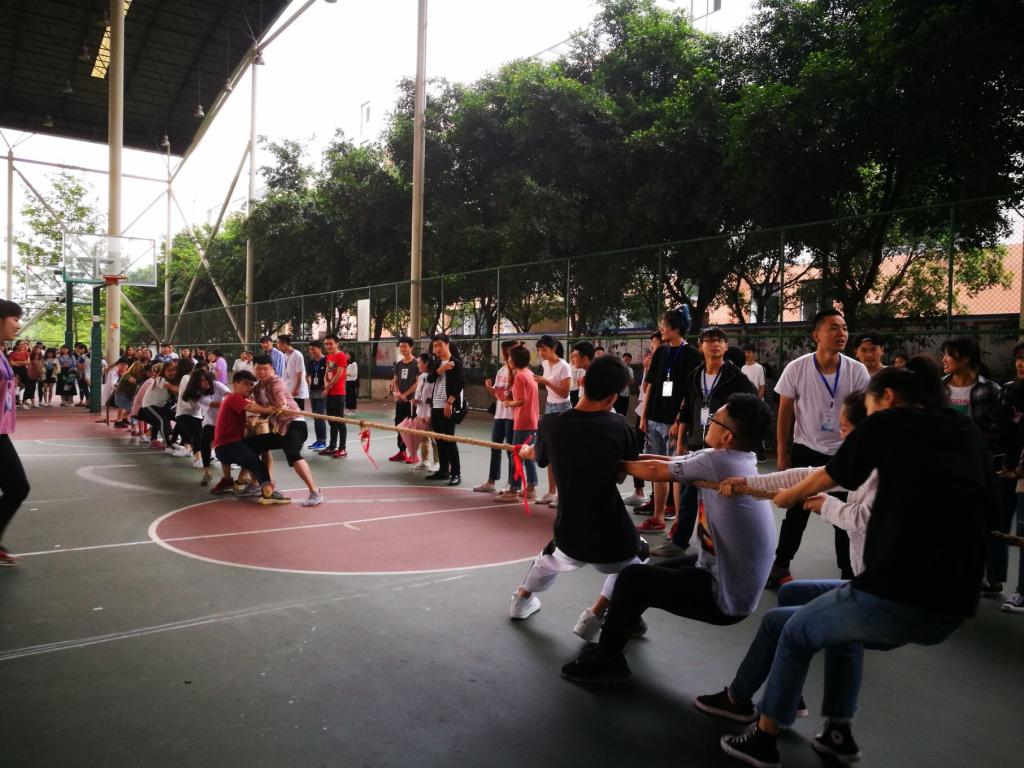同心协力彰显团队力量,2018年5月9日上午,财经学院六个专业、两个年级大约1400名学生在南校区风雨篮球场分成34队进行了激烈的拔河比赛。