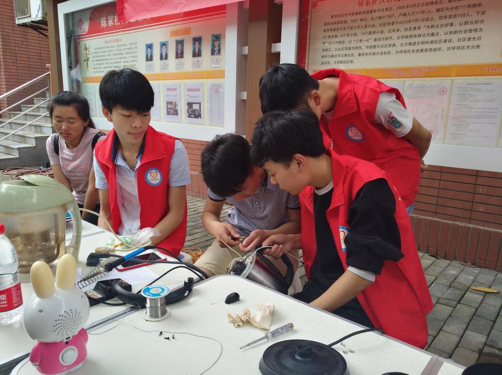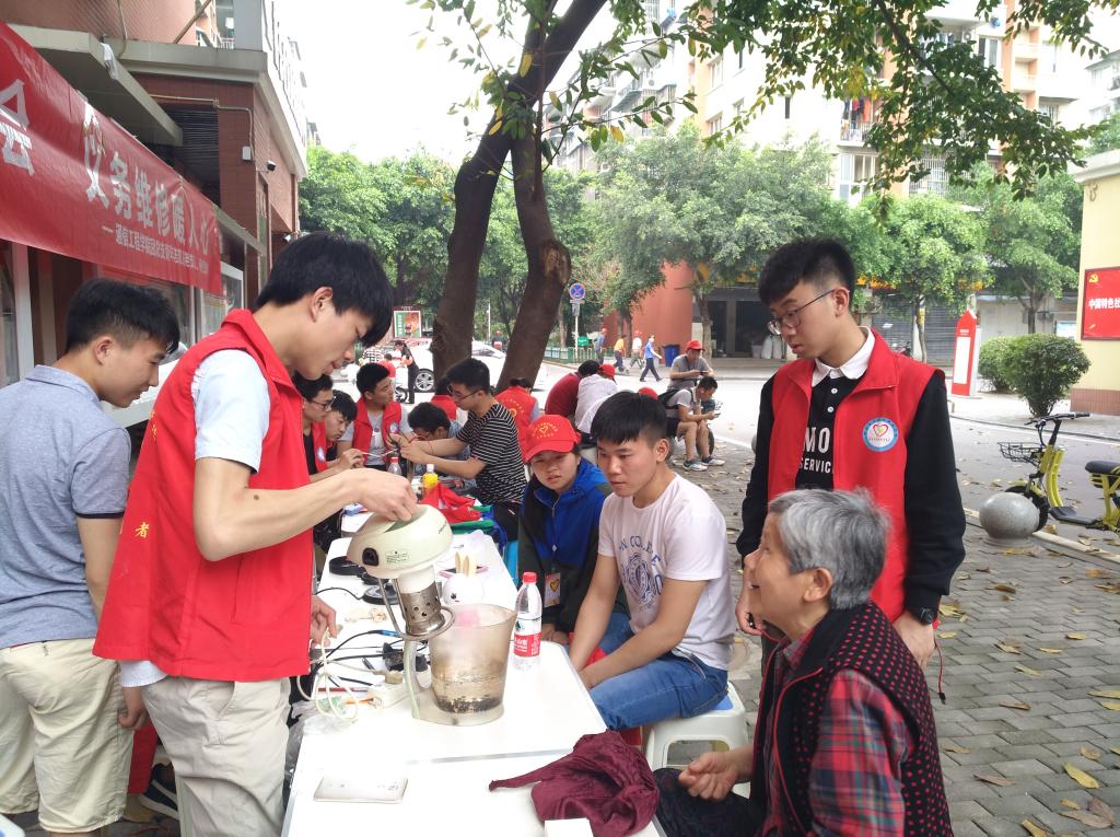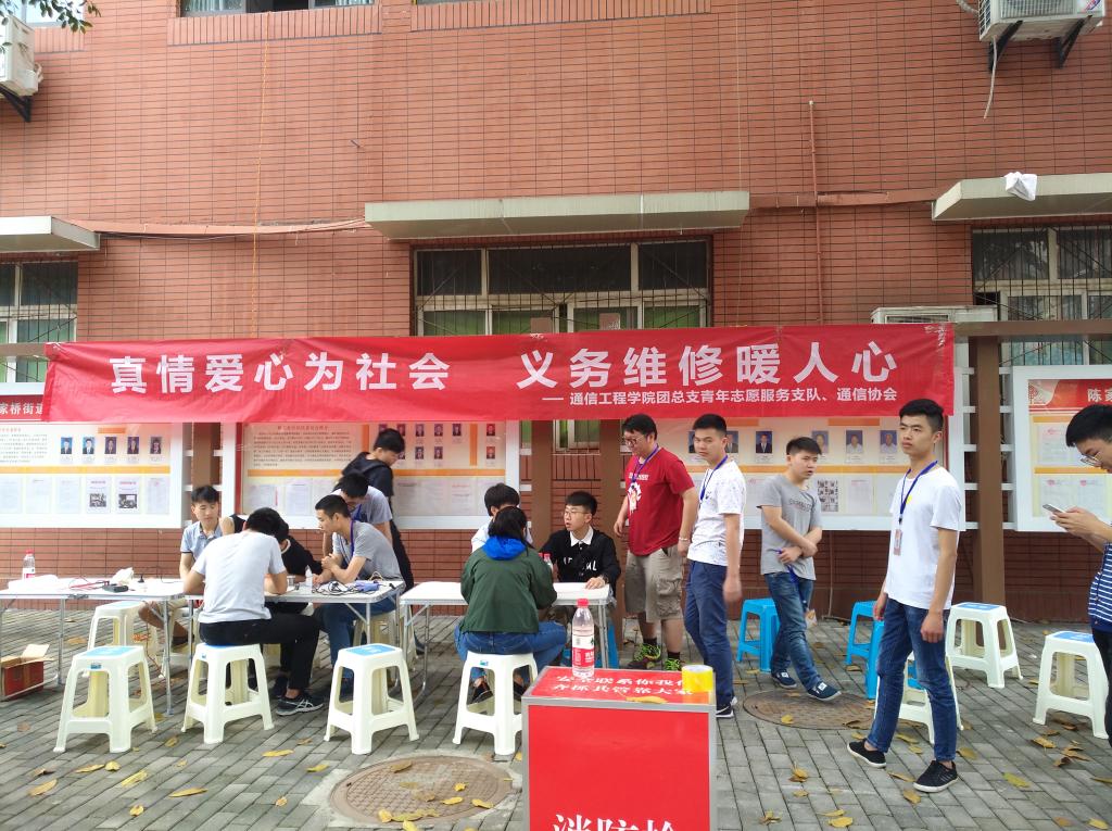 4月21日,重庆电子工程职业学院通信工程学院团总支青年志愿服务支队联和通信协会在陈家桥桥东社区进行了“义务维修”为主题的小家电维修活动,本次活动得到了社区居民和同学们的欢迎和支持,在通信学院志愿者和通信协会同学的合力配合下,一切工作都有序地进行。
