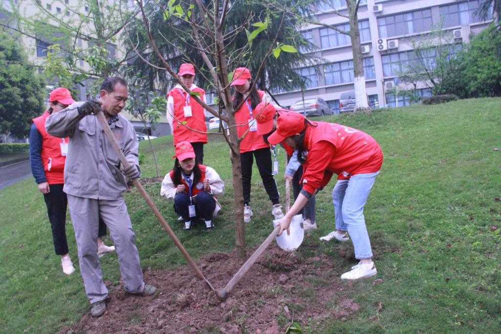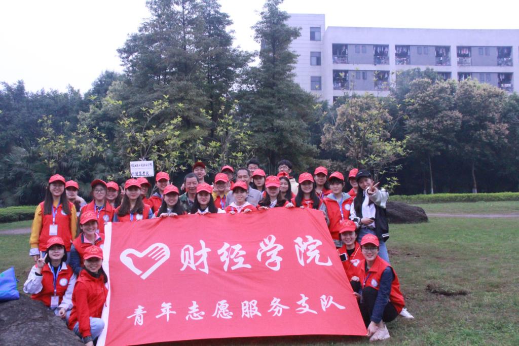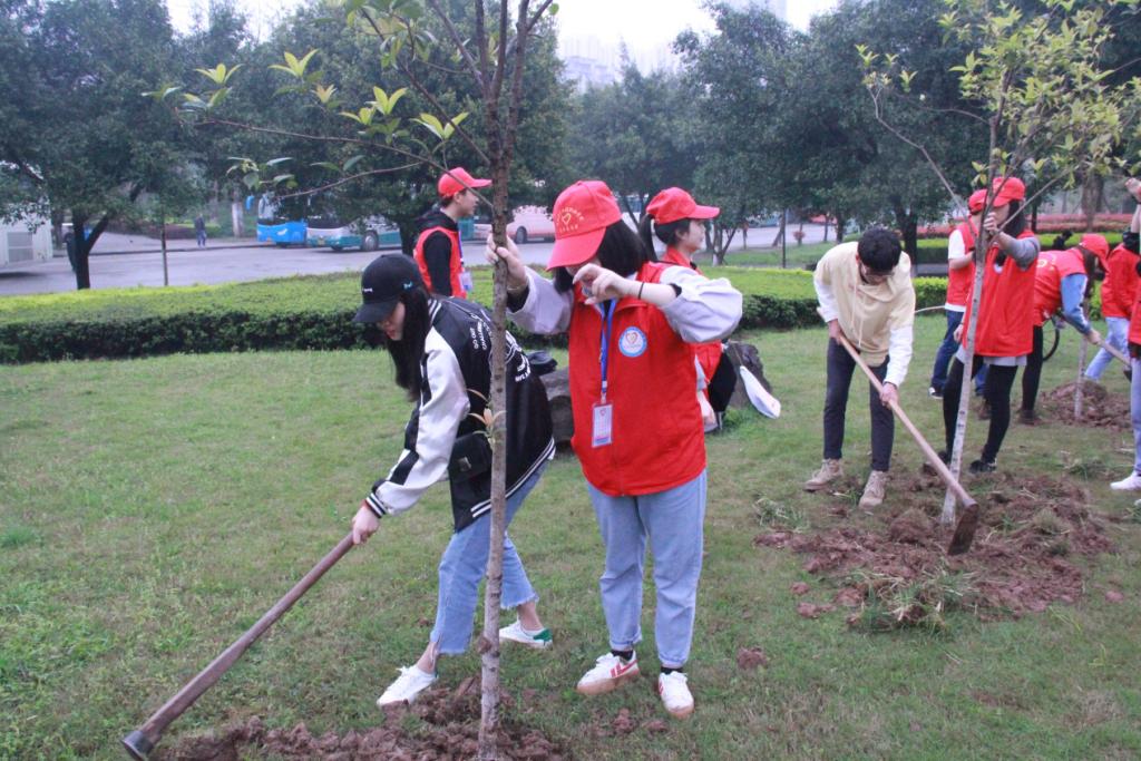 上午10点,财经学院青年志愿者服务支队的同学们整队出发,来到指定的植树地点。为了保证存活率,志愿者们还请来了学校的园丁叔叔的指导。同学们亲手挖坑、栽树、填埋,浇水,干得满头大汗,不亦乐乎。栽种过程的艰辛让志愿者们认识到美好环境的来之不易。同学们还在自己栽种的树下一起宣誓保护环境,做校园的绿色大使。并将财经学院牌子挂到自己栽种的树上,承诺一届一届青年志愿者要照顾好我们种下的树,为整个活动增添人文色彩,这些必将成财经学院志愿者同学们的永远的记忆。