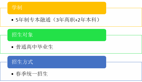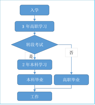 “3+2专本融通”是指考生进入到高职院校,完成3年高等职业教育学习任务并获得专科毕业证书,经转段考核录取后,再到本科高校就读2年,完成本科教育学习任务,获得本科高校颁发的普通本科层次(专升本)毕业证、学位证书和相关国家职业资格证书。