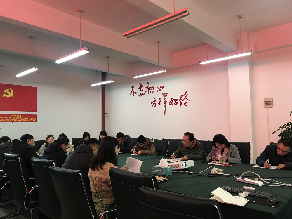 会议首先按照中心组政治理论学习2018年1月计划内容展开,由刘书记带领大家继续学习十九大精神重点内容;并集中学习了校党委组织部下发的1月主题党日活动的补充内容,即《中国共产党党务公开条例(试行)》、习近平新时代中国特色社会主义思想等。另外还就本学期的组织生活会和民主评议党员工作提出准备要求。