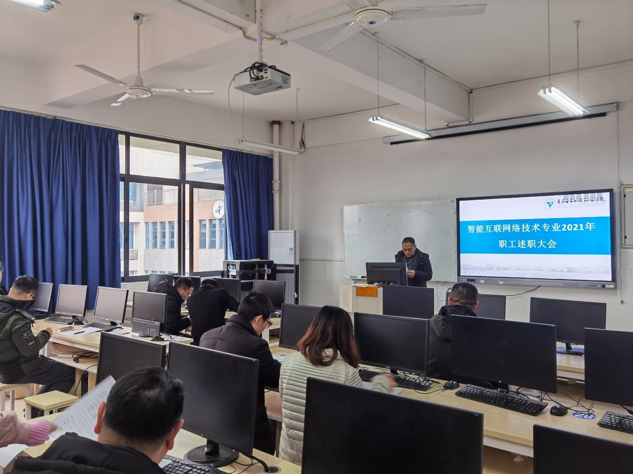 1月4日,电子与物联网学院智能互联网络技术专业在13503开展2021年职工述职大会。出席此次会议有电子与物联网学院副院长熊德明、智能互联网络技术专业主任高辉、系部全体专任教师,由党支部书记徐奡澍主持。