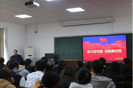 12月9日中午,学院党总支书记罗永前以“奋斗百年路 启航新征程”为主题,开启了本次青马工程培训第一课。罗永前书记从“丰功伟绩,恢宏史诗”“精神血脉,代代相传”“以史为鉴、开创未来”三个方面,对习近平总书记“七一”重要讲话和党的十九届六中全会精神进行了详细讲解,让同学们对中国共产党的百年奋斗历史有了更加深刻的认识,使同学们更加明白,作为新时代青年,要坚定马克思主义信念,要以史为鉴、开创未来,为实现中华民族伟大复兴的中国梦而不懈奋斗。