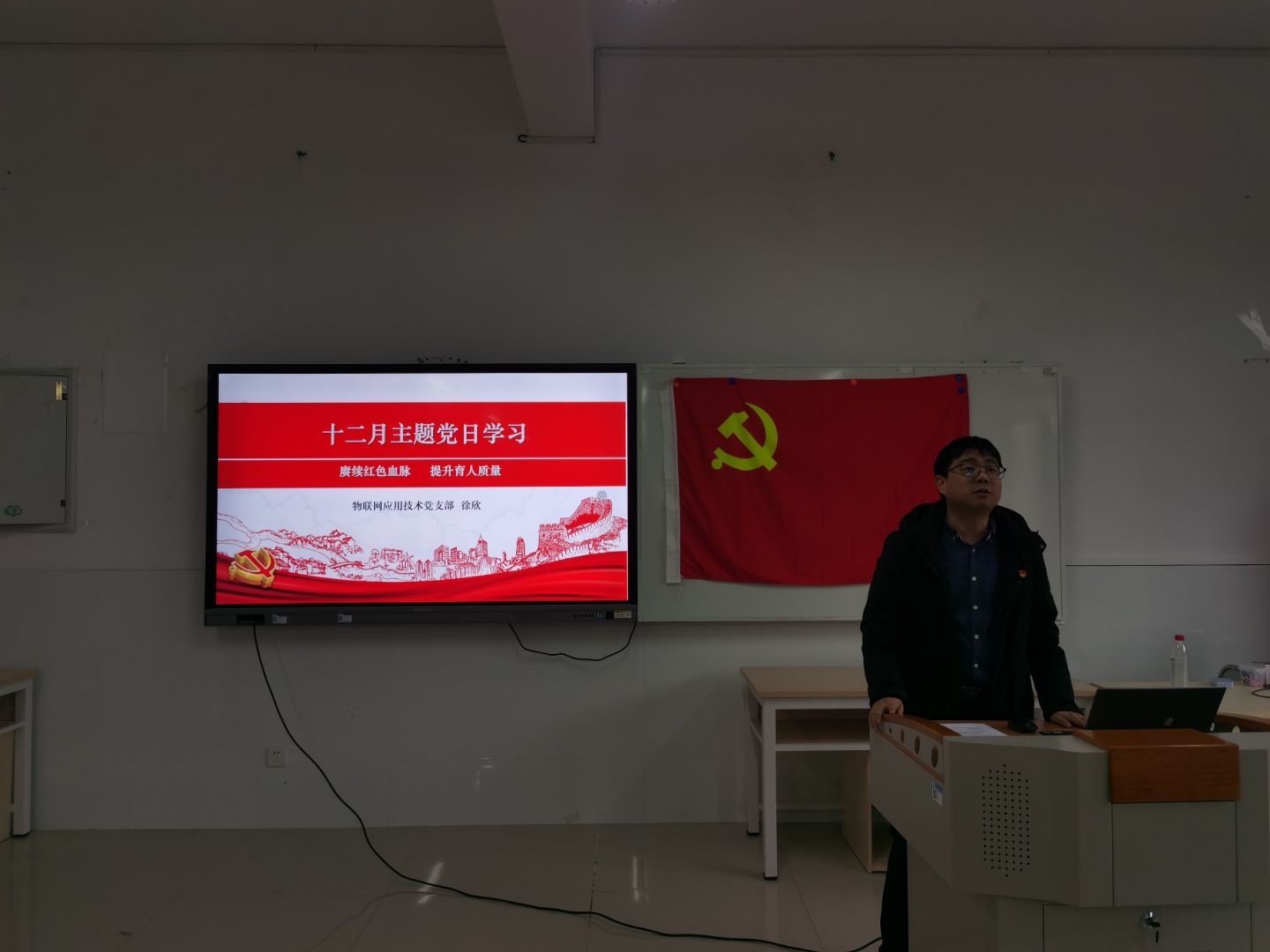 按学校组织部统一部署,电子与物联网学院物联网应用技术党支部于12月24日在12506开展主题为“赓续红色血脉,提升育人质量”的主题党日学习。支部书记徐欣同志主持,全体师生党员到场。