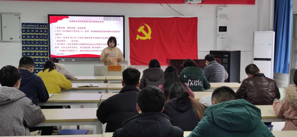 2月24日,电子与物联网学院应用电子技术党支部在12-204召开“开展社会实践 发挥党员作用”主题党日。本次大会由付渊同志主持,田晔非、龙力源、付渊、毛小群四位同志领学。