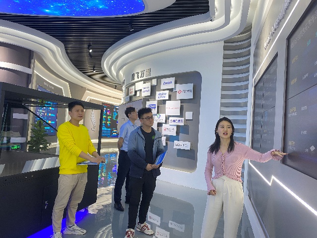谢宗霖、刘飞老师前往华为计算产业生态重庆中心,在企业解说员的带领下参观了华为鲲鹏生态展厅,并与鲲鹏中心负责人进行了深入交流。
