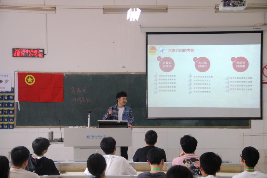 大会共分五项议程,由辅导员李创作为主讲人,为学生骨干一一介绍团干部”六查六问“专项行动的相关内容,其中包括背景、原则、具体内容、意义及本次大会的目的具体实施方案。