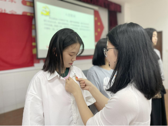 图3 龙琼阳同志为预备党员佩戴党员徽章
