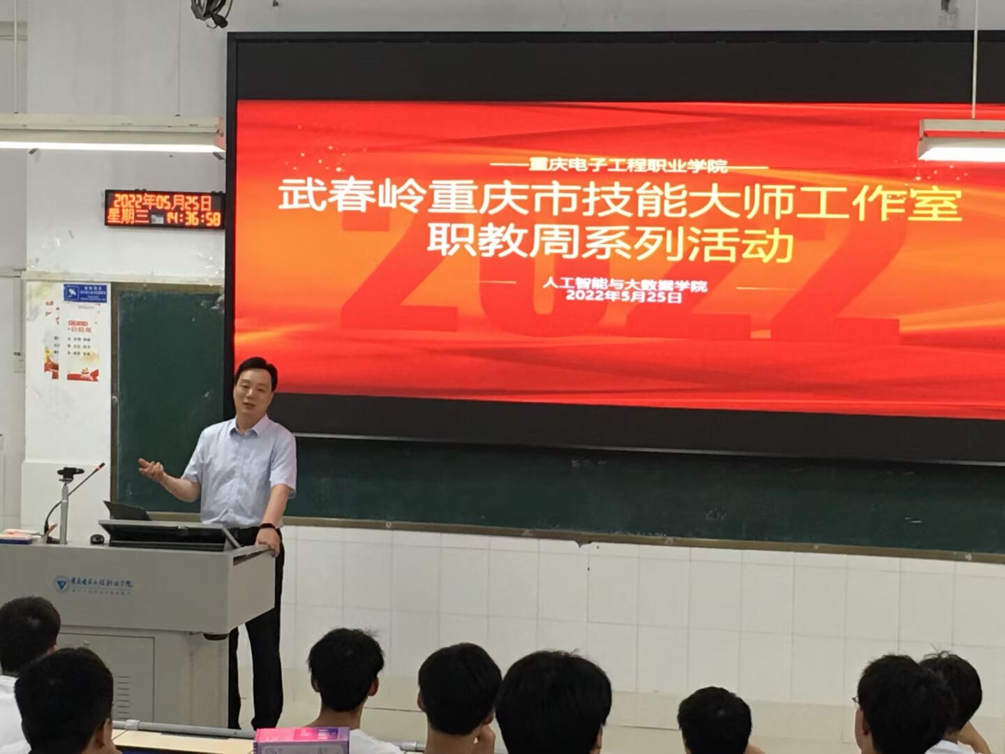 活动期间正值武春岭重庆市技能大师工作室、鲁先志重庆市技能大师工作室开展职教周系列技术交流活动。为切实提升信息安全技术应用专业学生技术应用能力,活动邀请了国家万人计划名师、武春岭重庆市技能大师工作室负责人—人工智能与大数据学院院长武春岭教授做了网络安全及IT领域“能工巧匠”养成与技能培养专题讲座交流。