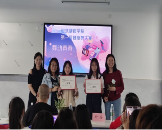 为响应职教活动周,丰富大学生课余生活,展现我院学子青春风采。5月27日,“舞动青春”--智慧健康学院第一届健康舞大赛在16栋如期举行。本次大赛旨在发扬同学们的创新精神,培养同学们的团队合作能力。由智慧健康学院团总支书记佘妮娟老师、学管科长任文慧老师、健康管理系副主任王保良老师、健康管理系王维老师担任比赛评委及颁奖嘉宾。