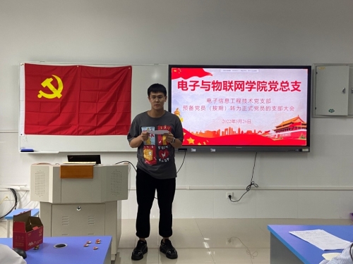 5月26日,电子与物联网学院电子信息工程技术党支部在12-205教室召开支部大会,开展“严组织纪律,守政治规矩”主题学习。此外,讨论并决议预备党员转正事宜。