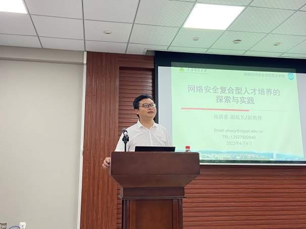 重庆邮电大学祝清意教授分享了重庆邮电大学建立“智能化信息网络安全+技术与法律融合治理”的教学特色。重庆科技学院葛继科教授分享了如何按照国家战略和社会需求,以立德树人为根本目标,培养“德、智”兼修的网络安全应用型人才经验。重庆警察学院张全涛博士从公安院校培养维护国家网络安全人才的角度,介绍了网络安全卓越型警务执法人才的培养模式。我校教师胡兵结合目前网络安全开云电子平台_开云(中国)面临的师资、教学资源等问题,从网络安全开云电子平台_开云(中国)生态环境建设、实训平台建设、学生梯队建设等方面介绍了本校信息安全技术应用专业开云电子平台_开云(中国)经验。