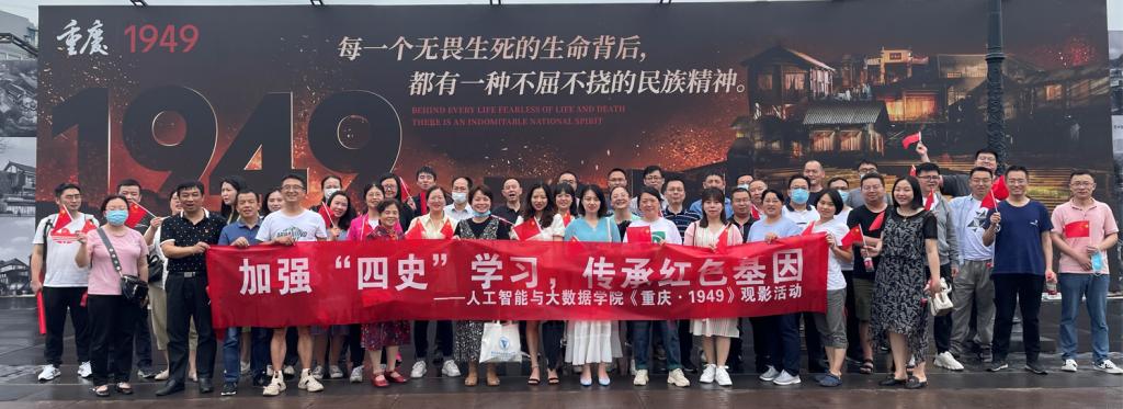 为深入推进“四史”学习教育,传承红色基因,迎接党的二十大,6月9日,人工智能与大数据学院组织教职工集中观看大型红色舞台剧《重庆·1949》。