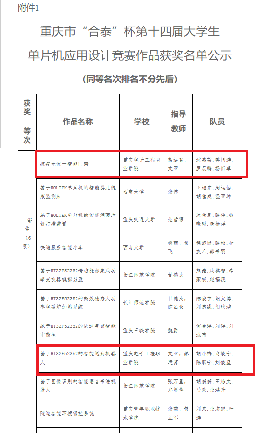 6月18日,重庆市“合泰”杯第十四届大学生单片机应用设计竞赛圆满结束。经过激烈角逐,我校电子与物联网学院“智能电子产品设计工坊”的两支参赛队脱颖而出,荣获一等奖1项和二等奖1项。