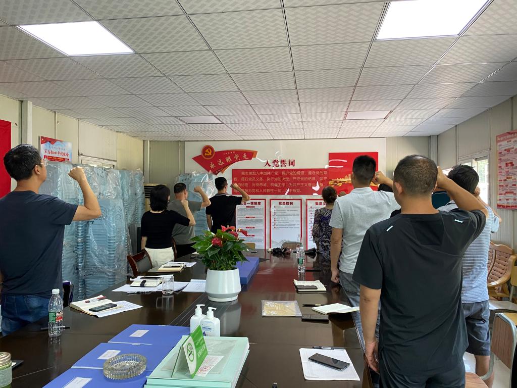 活动伊始,全体党员高举右手,在支部书记朱强同志的带领下重温自己对党的虔诚誓言:“我志愿加入中国共产党,拥护党的纲领,遵守党的章程,履行党员义务……”铿锵有力的誓词,强烈震撼着在场的每一位党员,一字一句神圣而豪迈,传达出身为共产党员的荣誉感、责任感和使命感。通过“重温入党誓词”活动,支部全体党员的思想又一次受到深刻洗礼,理想信念更加坚定。大家纷纷表示,要不忘初心、牢记使命,始终保持共产党员的先进性和政治本色,切实发挥党员先锋模范作用,以实际行动为党旗增光添彩。