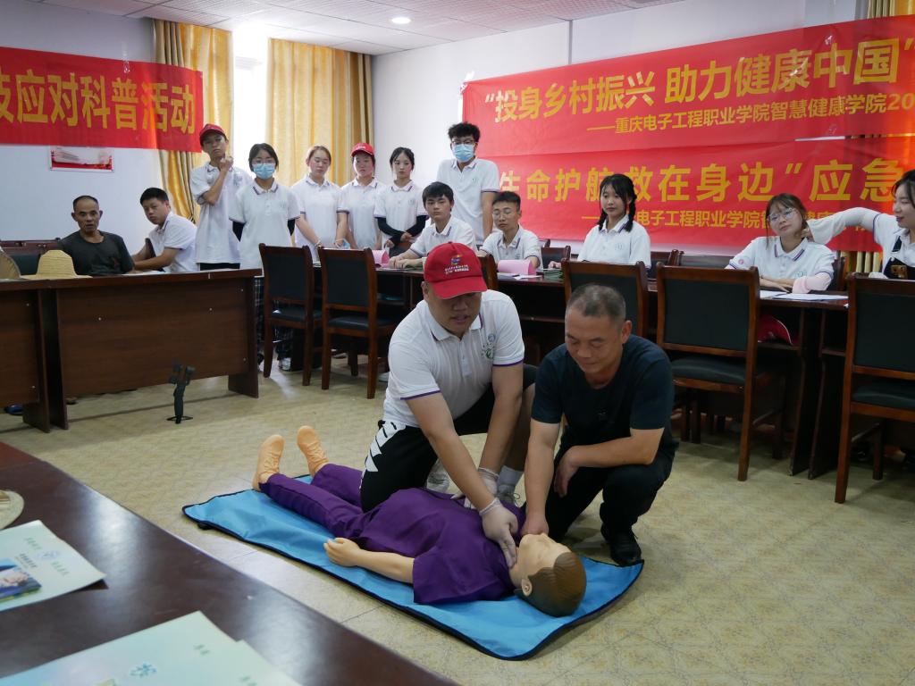 重庆电子工程职业学院智慧健康学院是应急急救知识科普的坚定践行者,为普及应急急救知识,提升红星村村民在突发情况下的初期应急处置、自救与互救能力,真正为老百姓做好事、做实事,2022年7月9日,智慧健康学院“三下乡”社会实践团来到万州区熊家镇红星村便民服务中心,为红星村村民带来一场“生命护航,‘救’在身边”为主题的应急技能培训。