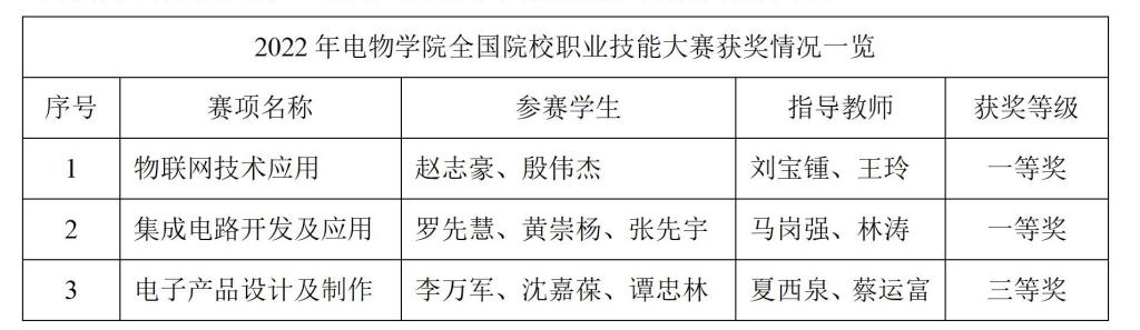 2022年全国职业技能大赛(高职组)圆满结束。在此次大赛中,我院共有3支代表队晋级国赛。经过前期紧张的备赛和赛场上激烈的角逐,最终3支代表队获得一等奖2项、三等奖1项的好成绩。其中集成电路开发及应用赛项更是我校首次获得该赛项国赛一等奖,实现了我校技能大赛成绩新突破!