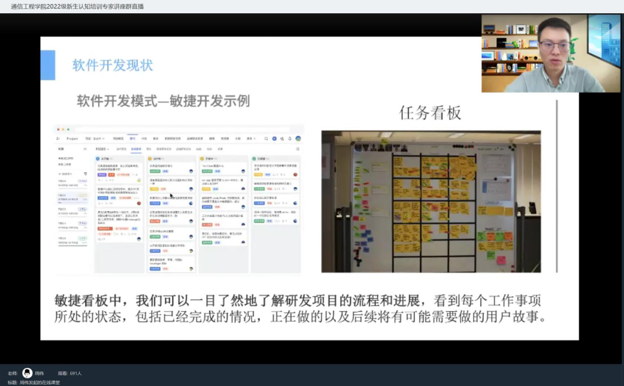 为培养学生专业认知,拓宽学生专业视野,2022年11月12日,通信工程学院特邀重庆知向云信息技术有限公司联合创始人、研发总监周伟老师面向2022级新生开展《软件开发行业发展与未来人才需求》专题讲座,由于疫情防控需要,讲座在线上进行,通信工程学院2022级近700名新生在线上观看讲座并与专家开展互动。