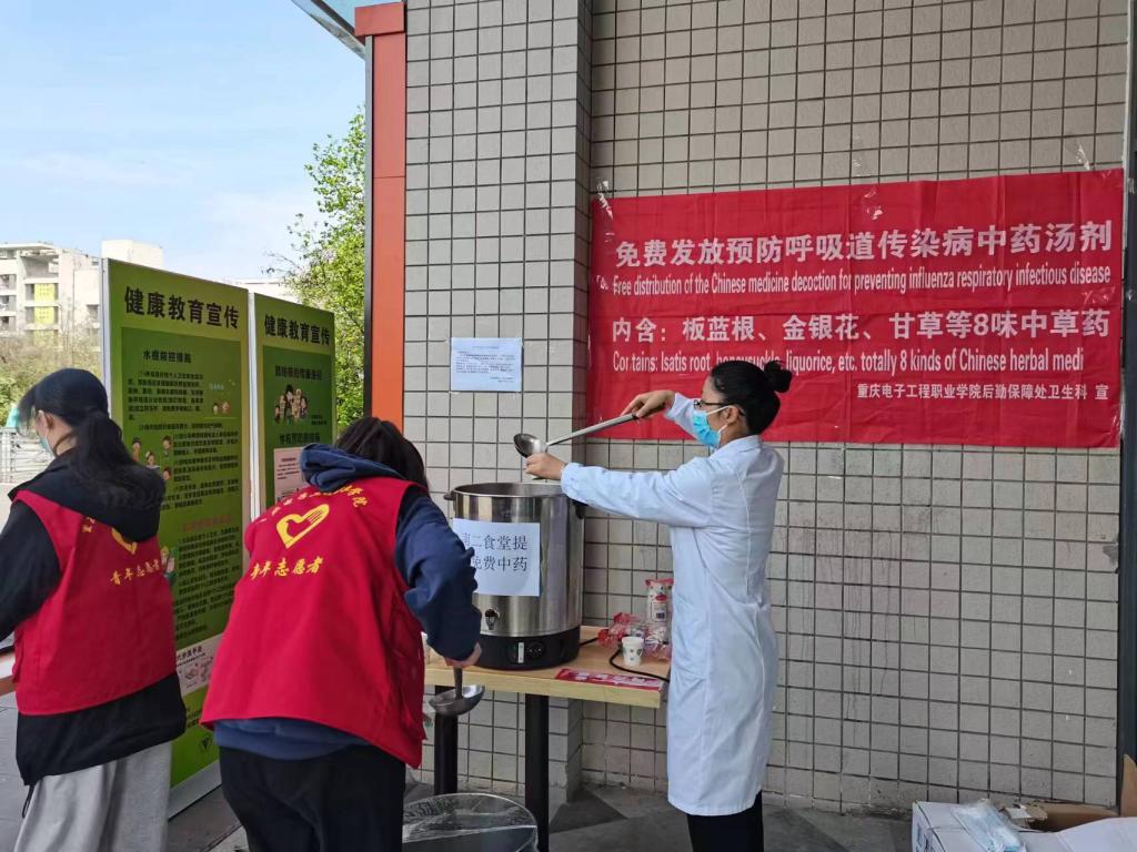春季是流感等传染病的高发季节,此时,人体内环境很难与外界环境相适应,机体免疫力相对低下。学校高度重视学生传染病防治工作,为防止流感的传播,呵护学生健康,后勤保障处卫生科提前选购优质的中药材,包含有板蓝根,银花,麦冬,桑叶,甘草,罗汉果,薄荷等,委托学校食堂按配方统一熬制,于2023年3月20日上午11:30分别在南北校区食堂门口组织分发防流感汤药,众多师生前来领取汤药,并积极参加流感防控的扫码答题活动,填写流感防控调查问卷。卫生科医生在学子广场健康展板前为路过的师生们讲解流感的防控知识,大家觉得收获颇丰。当日汤药发放1200多杯,问卷调查数百份,让师生对流感有更多的认识,掌握更积极有效的防流感措施,对保障广大师生的身体健康、维护正常的教学秩序起到了积极作用。