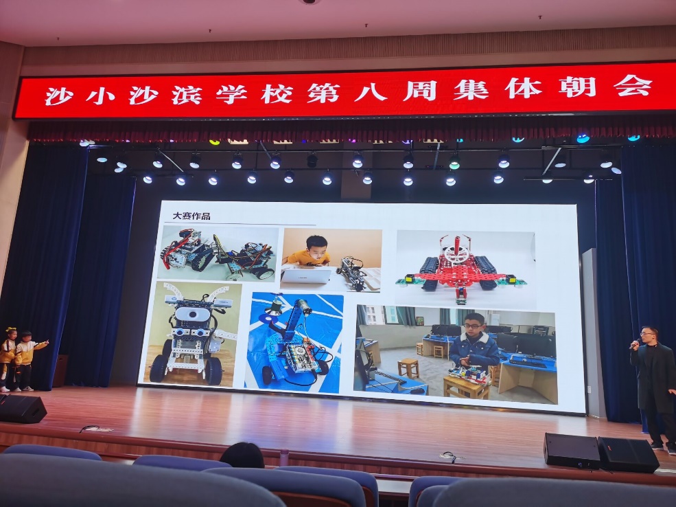 李饶老师首先公布了沙滨学校在第三届“沙磁杯”青少年人工智能大赛中的获奖情况,随后介绍了沙坪坝区人工智能学会的基本情况,主要职能,科普工作开展情况,科普基地建设情况等,并详细的介绍了“沙磁杯”青少年人工智能大赛的开展情况,主要领域,奖项设置等,同时介绍了第四届“沙磁杯”青少年人工智能大赛的筹备情况,时间安排。最后,就如何做好青少年科普教育工作与沙滨学校相关老师做了进一步沟通。