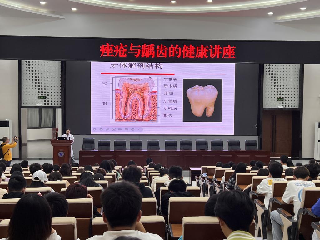 为了加强师生对皮肤和牙齿的保护,后勤保障处卫生科特邀陈家桥医院皮肤科和口腔科专家于2023年4月13日下午2:30在我校博远厅对常见病痤疮和龋齿开展健康知识讲座。