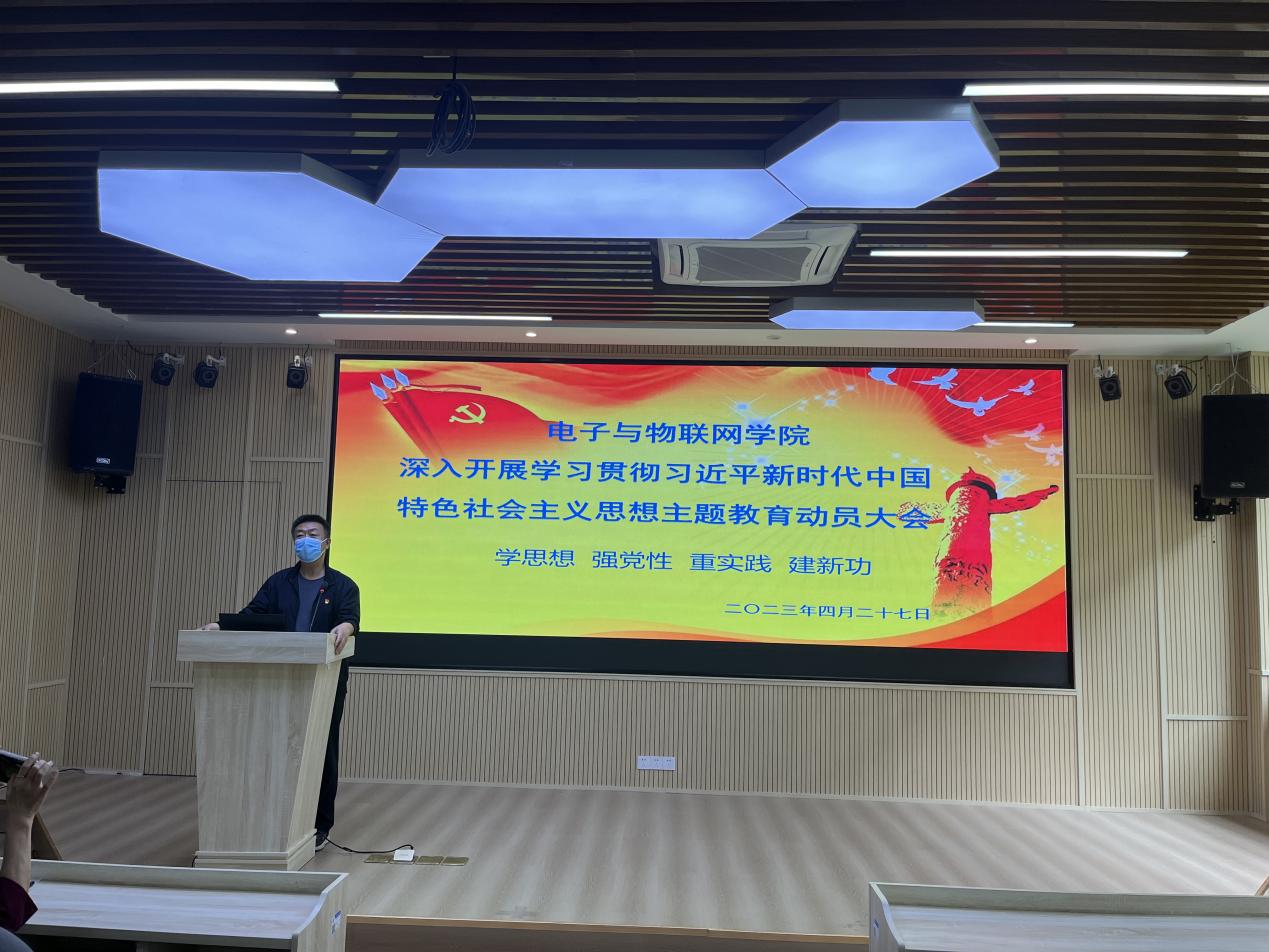 张红斌同志结合电子与物联网实际,从充分认识开展主题教育的重大意义、准确把握主题教育的目标要求、推动主题教育走深走实、确保主题教育取得扎实成效四个方面对学院主题教育工作做了动员和具体安排。