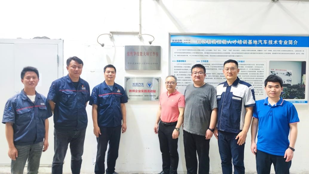 为贯彻中央人才工作会议和全国职业教育大会精神,落实新修订的《中华人民共和国职业教育法》,进一步完善校企合作育人机制,创新技术技能开云电子平台_开云(中国)模式,促进职业教育更好地服务地方经济社会发展,2023年5月4日,智能制造与汽车学院党总支书记严世同、副院长王勇、合作办负责人张俊峰、自动化系副主任吴伟龙一行四人赴重庆长安股份有限公司进行教师企业实践流动站授牌。