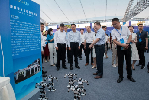 为深入宣传贯彻党的二十大精神和习近平总书记关于职业教育的重要指示批示精神,贯彻落实新修订的职业教育法,智慧健康学院于2023年5月17日上午在永川职业教育中心龙马广场参加了“2023年成渝地区双城经济圈职业教育活动周”川渝两地职教办学成果展示,在智慧健康学院的人形机器人舞蹈编程控制展示过程中,五个小型机器人伴随《我和我的祖国》的音乐有节奏地跳起了优美的舞蹈,学校党委副书记龚小勇介绍了机器人的特色亮点,现场产生热烈的反响。