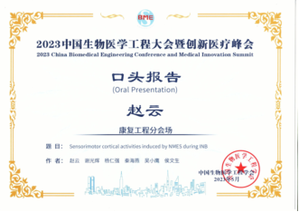智慧健康学院教师赵云博士参会并在康复工程分会场做了《Sensorimotor cortical activities induced by NMES during INB》为题的报告,介绍了其在神经肌肉电刺激诱发人手运动感知的脑电网络量化评估研究进展,旨在为肌电假肢手提供更为自然的运动感觉反馈。