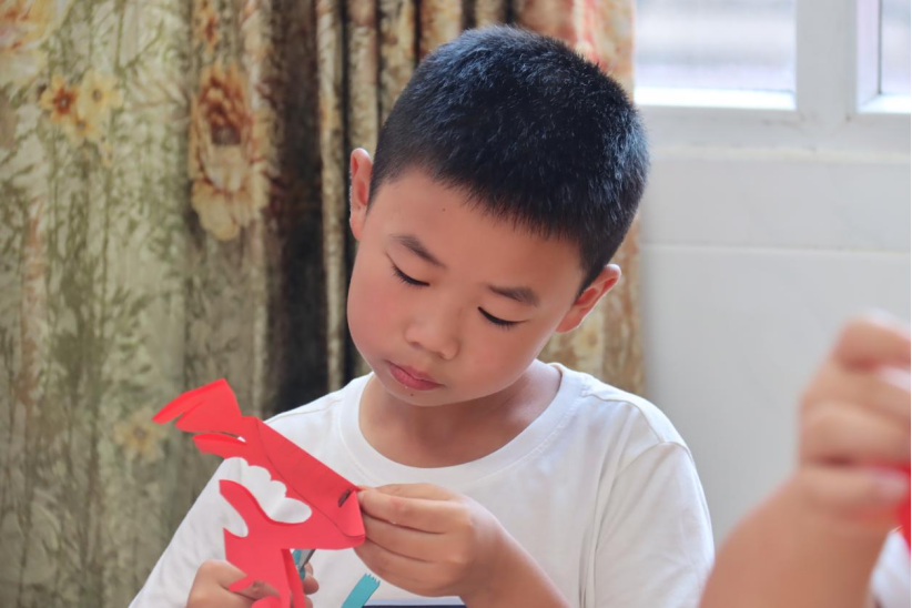 小朋友正在传统文化课堂上剪纸