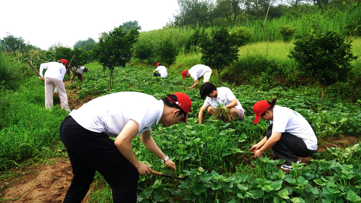 悠悠夏日长,实践在路上。7月7日上午,实践团成员们在当地农民伯伯的带领下来到一片绿油油的红薯田,对农作物旁的杂草进行清除。成员们认真聆听农民伯伯讲解除草时的注意事项,一是要注意安全,避免被蚊虫叮咬;二是除草时要细心,避免把杂草和红薯藤一起拔出来。拔草其实很难,要连根拔起,不伤土质,不伤庄稼……